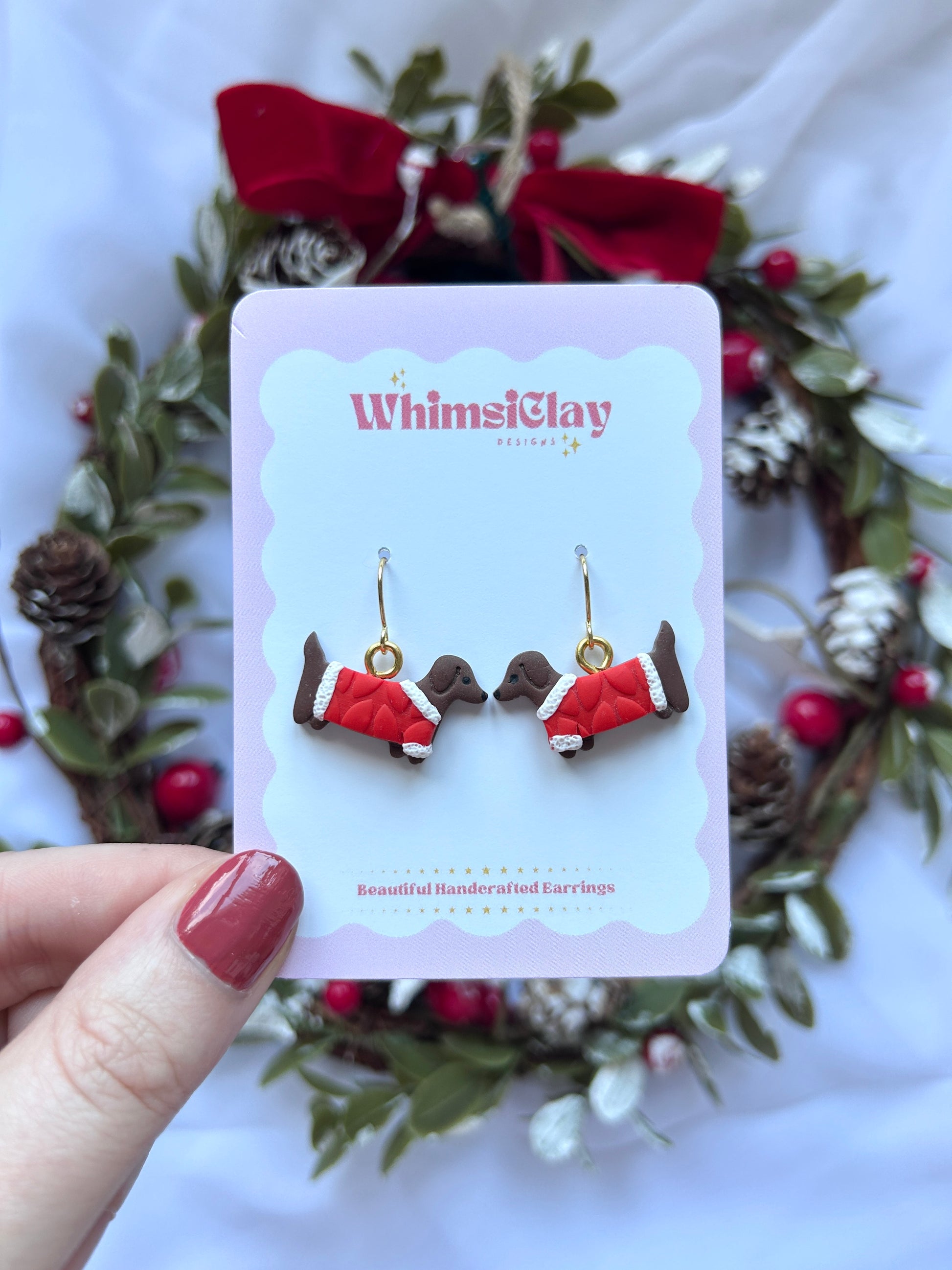 Christmas dog earrings made with polymer clay and so cute and light to wear!