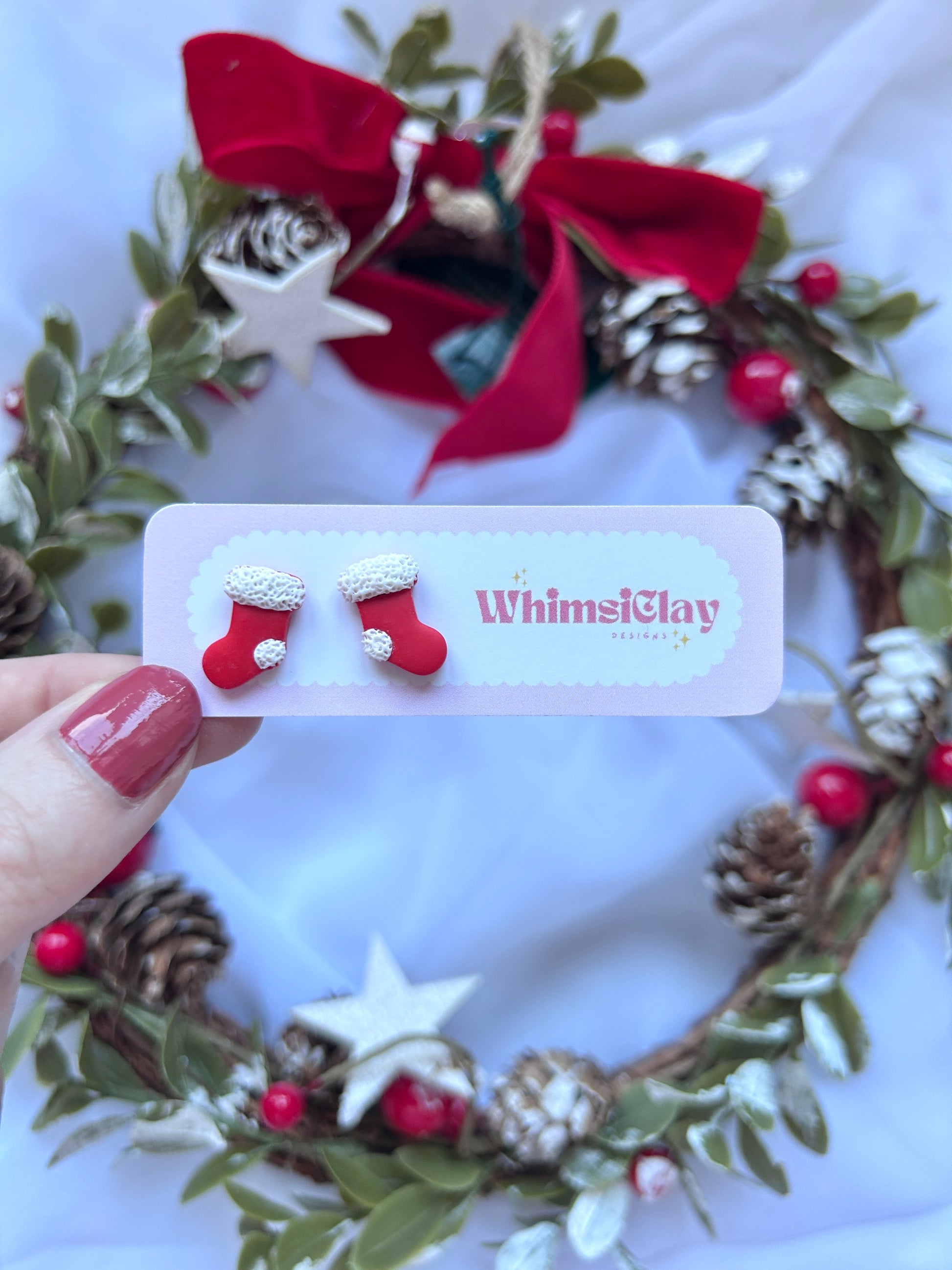 Christmas stocking stud earrings made with polymer clay and so cute and light to wear!