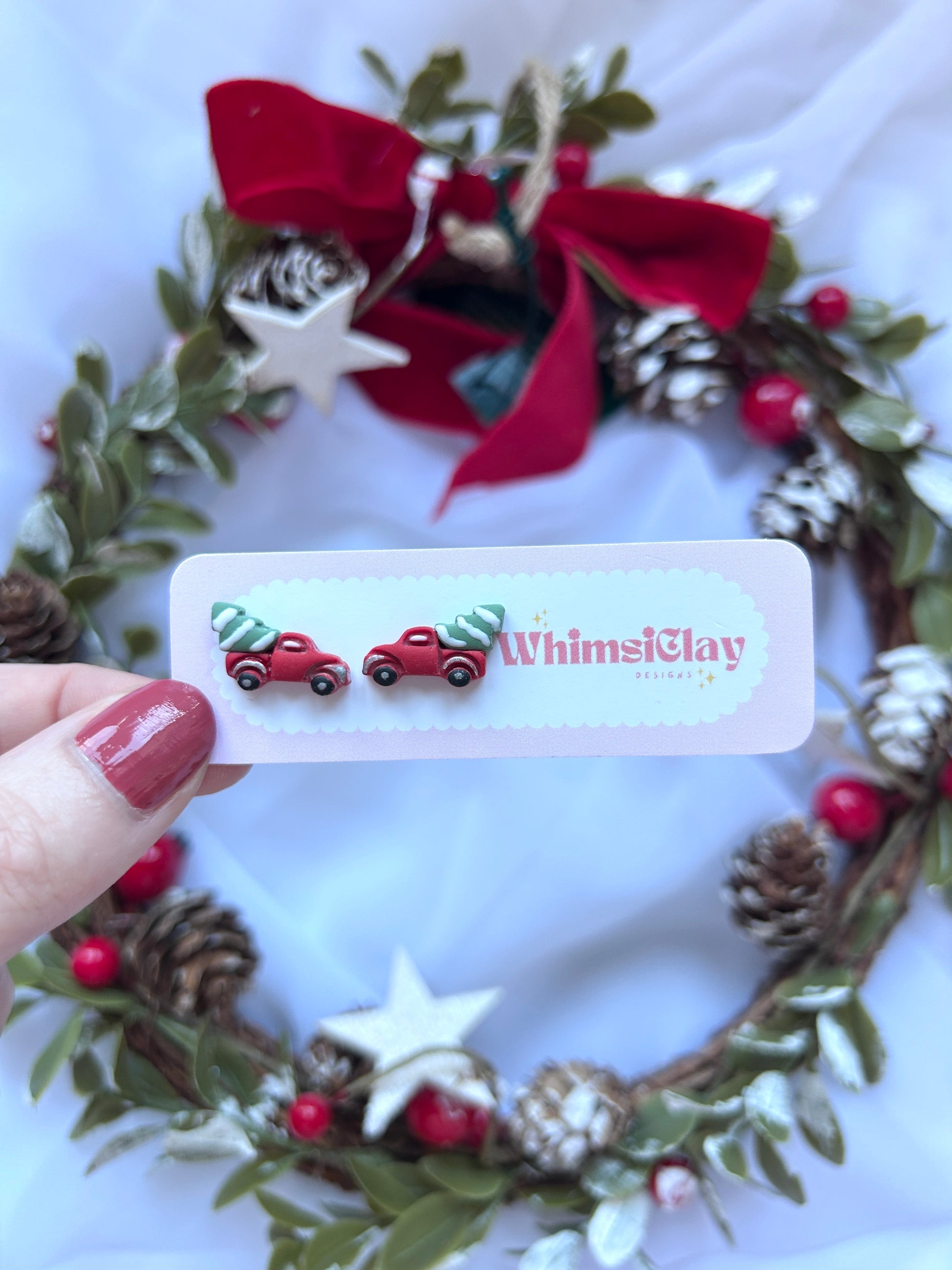 Christmas truck stud earrings made with polymer clay and so cute and light to wear!