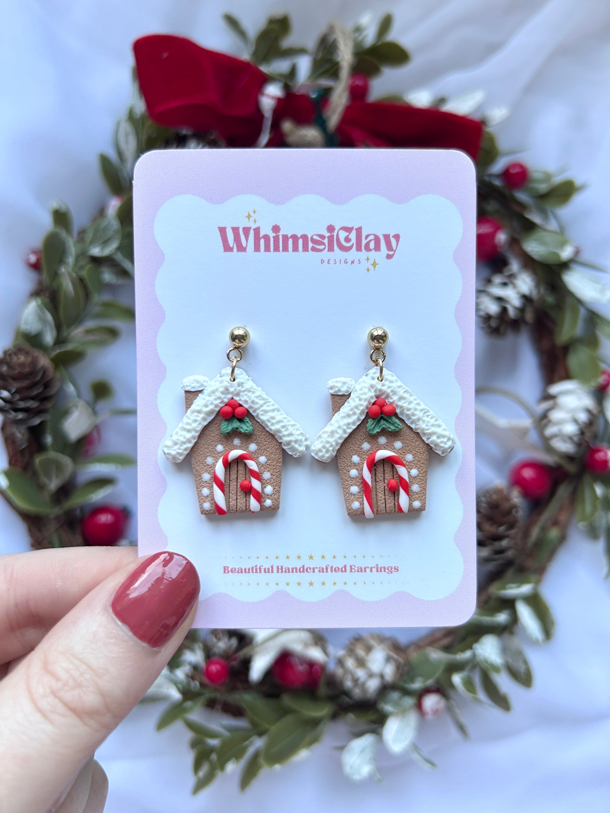 Gingerbread house earrings made with polymer clay and so cute and light to wear!