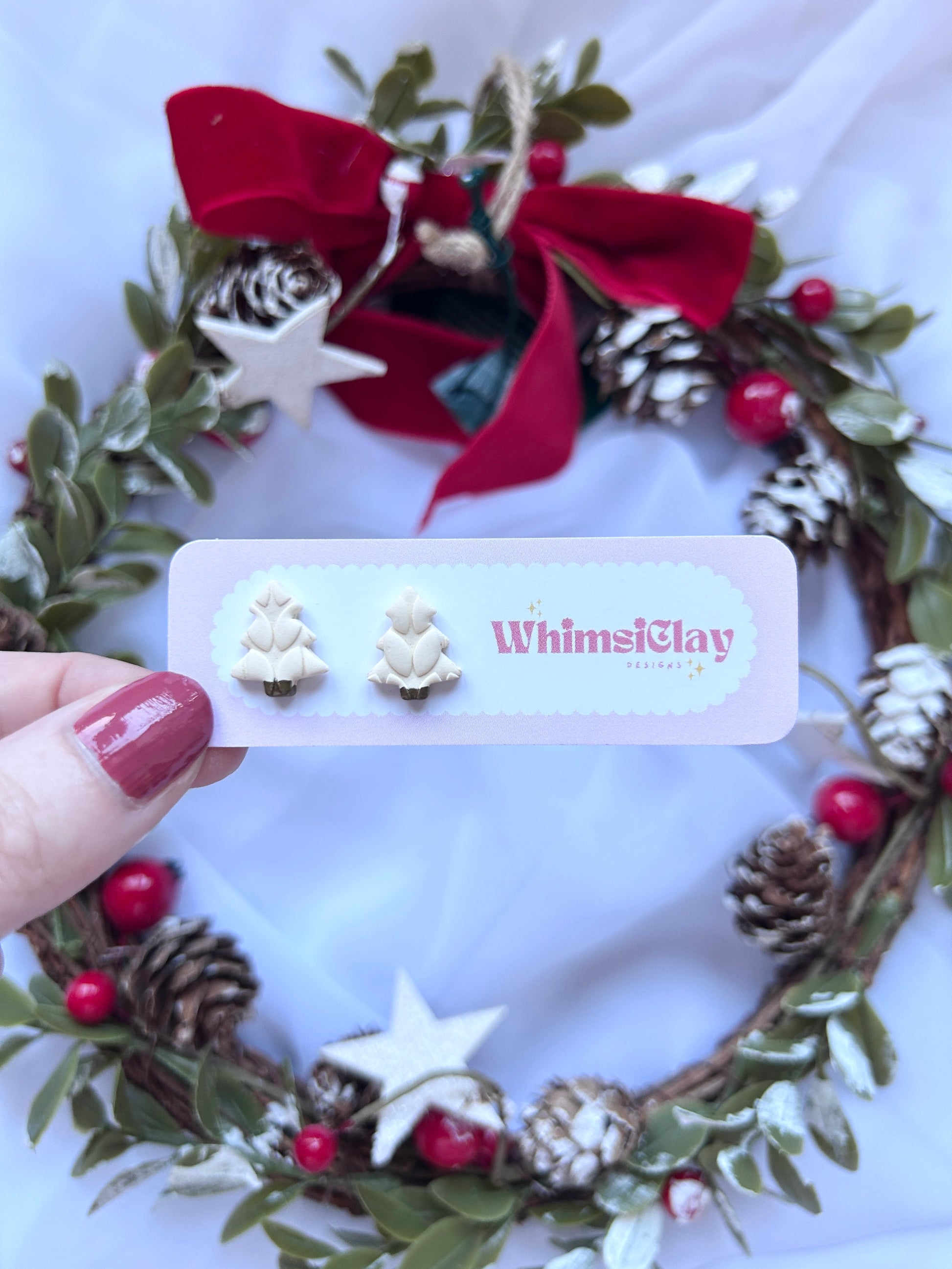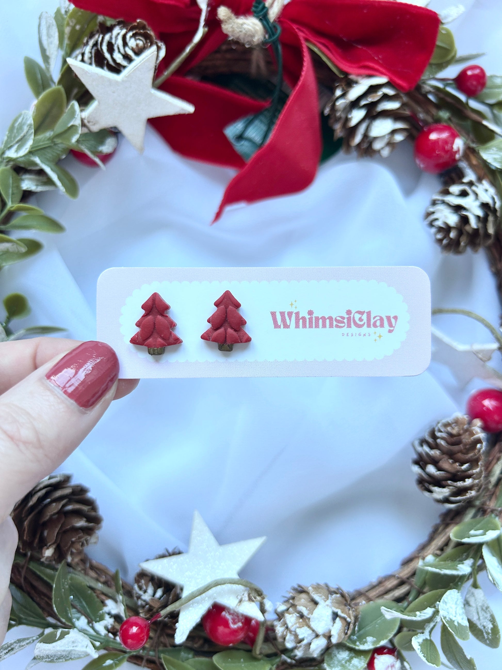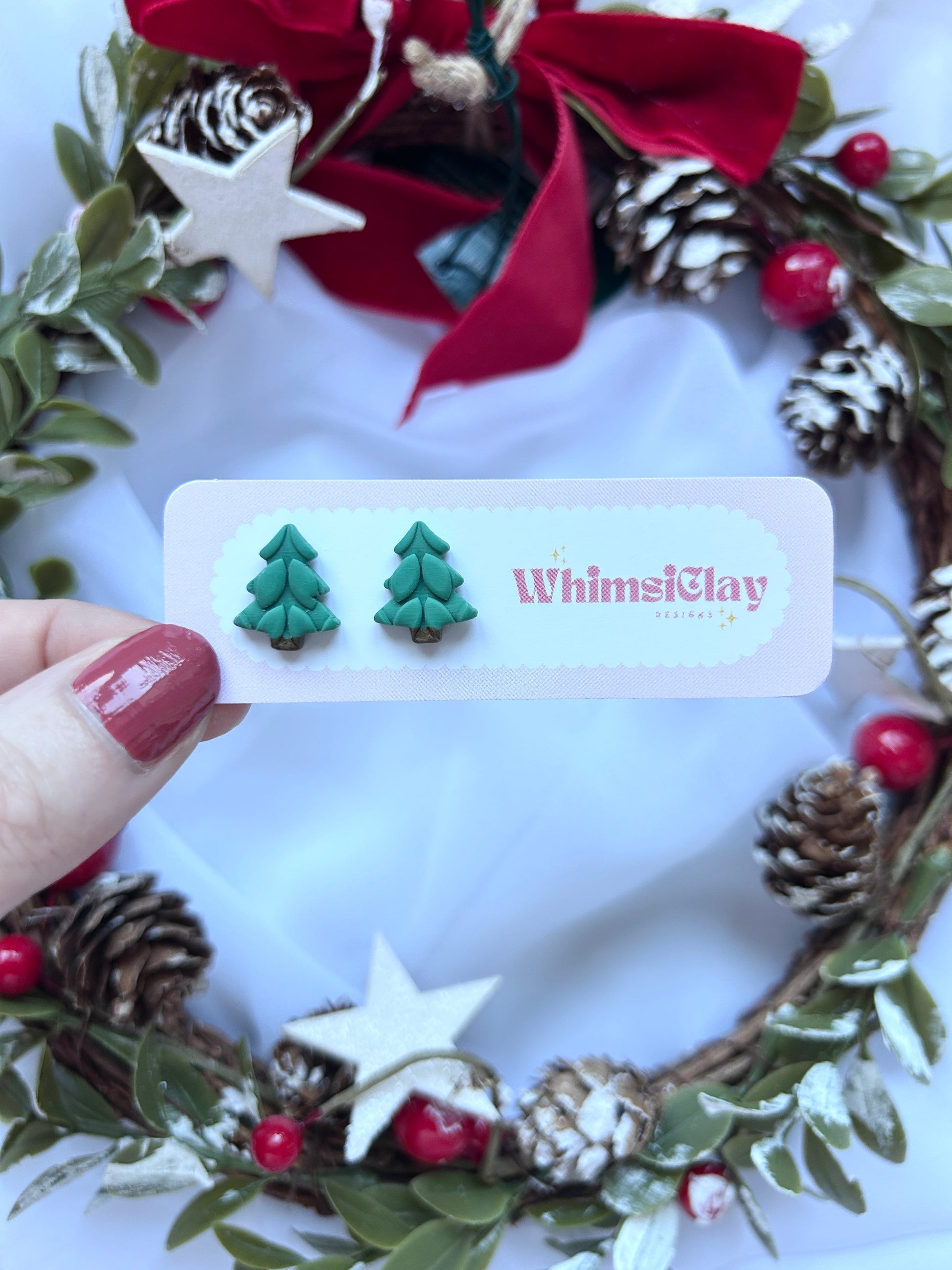 Knitted christmas tree stud earrings made with polymer clay and so cute and light to wear!