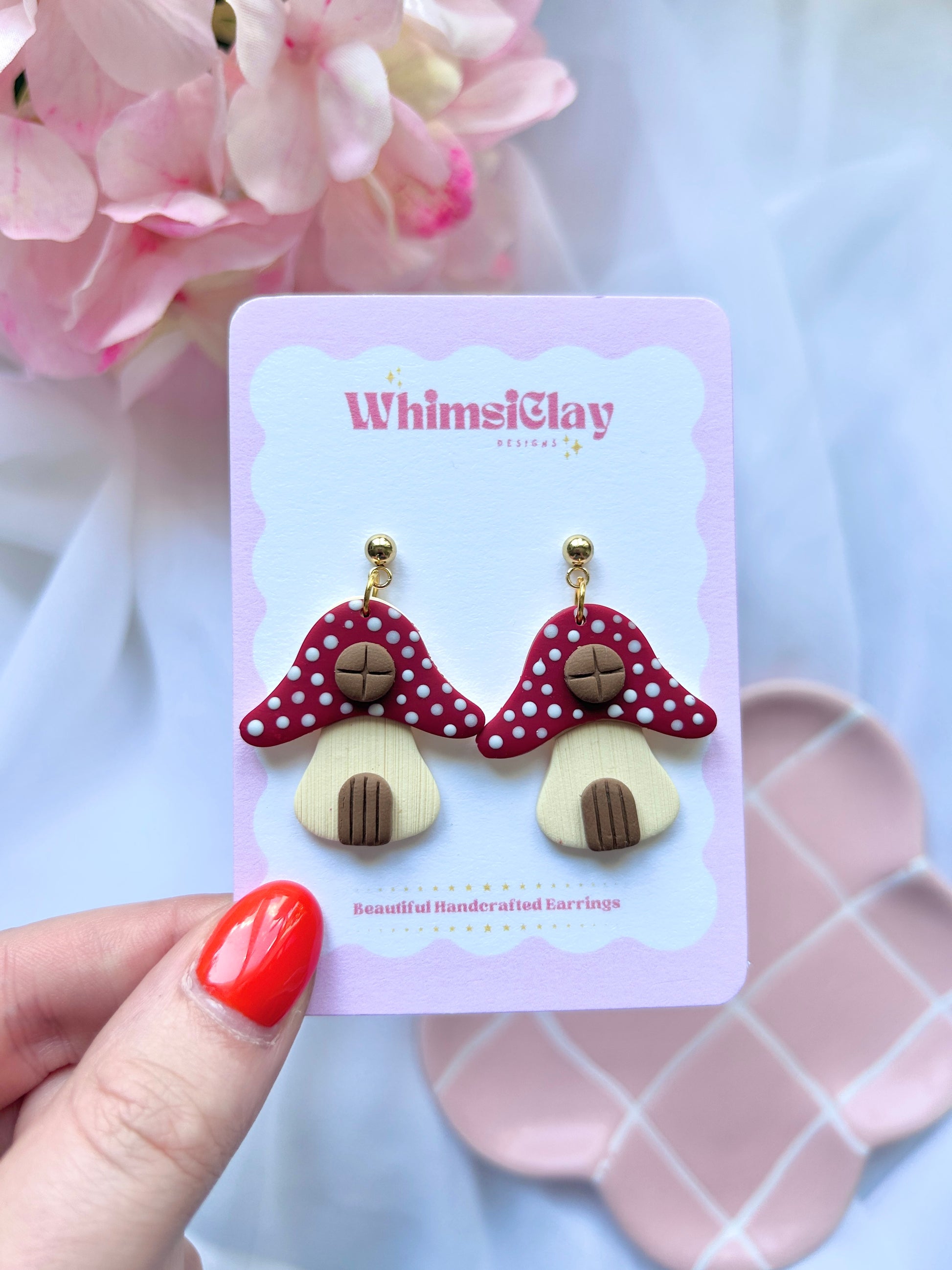 Mushroom fairy house earrings made with polymer clay and so cute and light to wear!