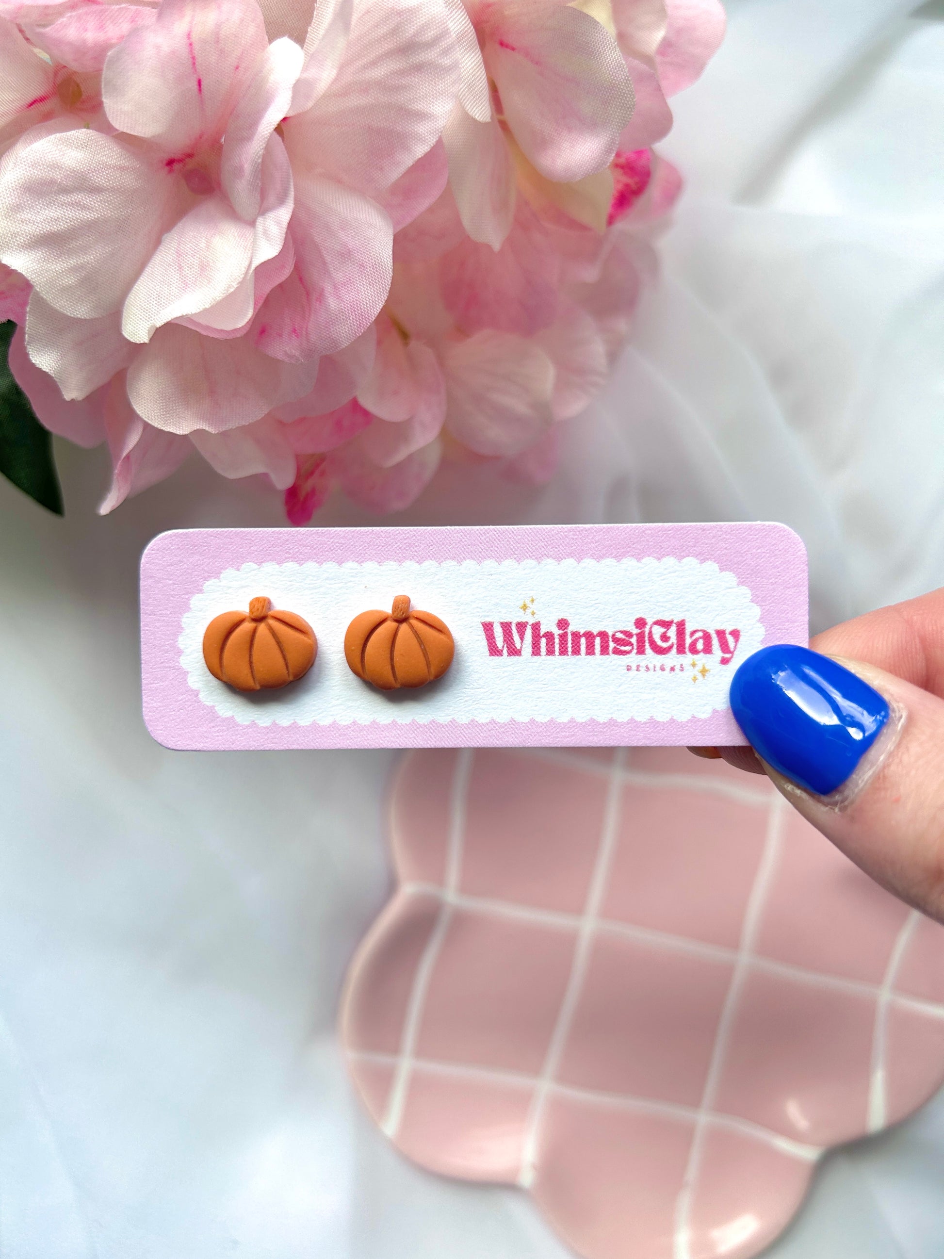 Pumpkin stud earrings made with polymer clay and so cute and light to wear!