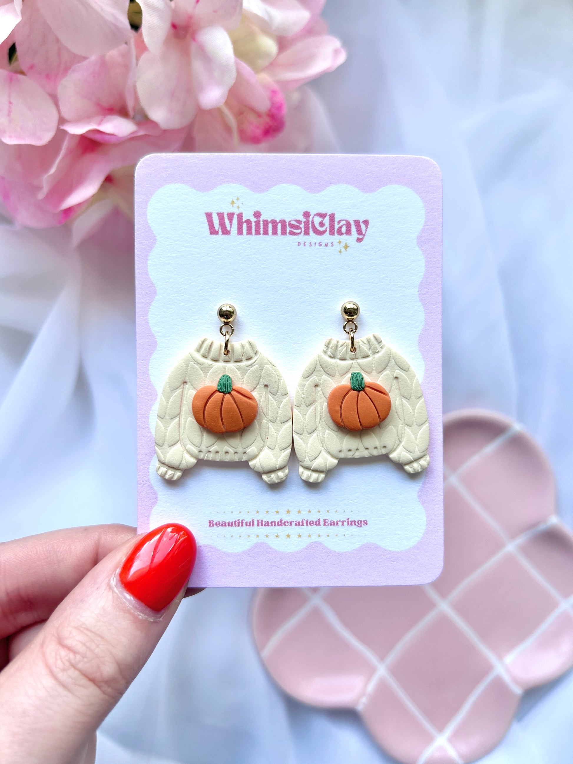 Pumpkin jumper earrings made with polymer clay and so cute and light to wear!