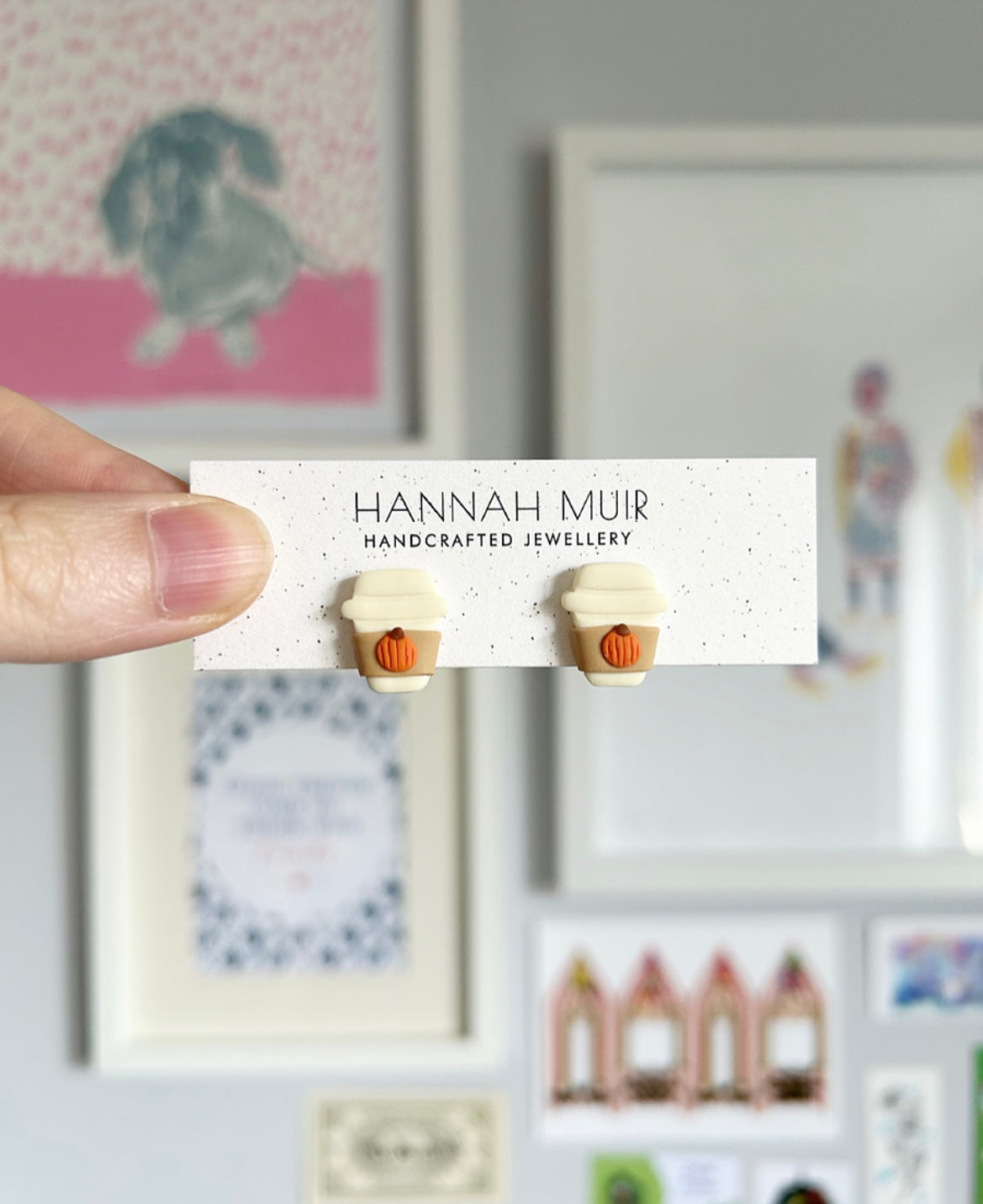 Pumpkin spiced latte stud earrings made with polymer clay and so cute and light to wear!