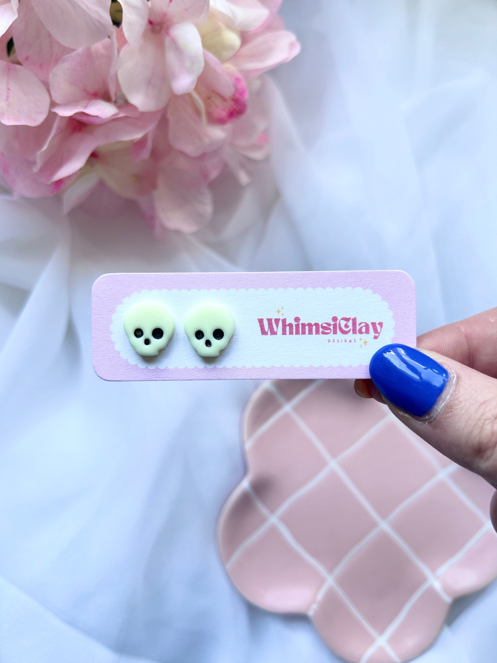 Skull stud earrings made with polymer clay and so cute and light to wear!